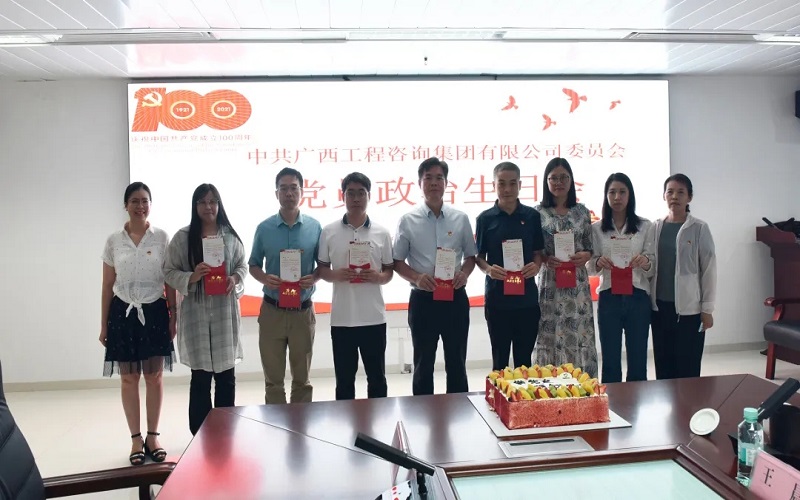 為進一步強化黨員的身份意識、宗旨意識、責任意識和服務意識,在工作中和生活中切實發(fā)揮先鋒模范作用,從而進一步增強基層黨組織的凝聚力、戰(zhàn)斗力、創(chuàng)造力,6月11日,廣西工程咨詢集團總部一支部、二支部聯(lián)合舉辦主題黨日活動,為9名黨員舉辦集體政治生日會。
