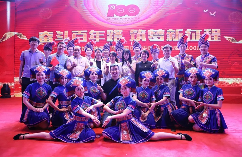 6月29日,“奮斗百年路 筑夢新征程”北投集團(tuán)慶祝中國共產(chǎn)黨成立100周年文藝匯演在廣西音樂廳舉行。廣西工程咨詢集團(tuán)、北投信創(chuàng)集團(tuán)、北投能源集團(tuán)聯(lián)合出演情景歌舞《壯鄉(xiāng)兒女頌黨恩》,突出少數(shù)民族元素、脫貧攻堅工作,以壯話形式歌唱脫貧后壯鄉(xiāng)兒女的幸福生活,載歌載舞為建黨百年獻(xiàn)上誠摯祝福,同時將熱烈喜慶的氣氛推向高潮。