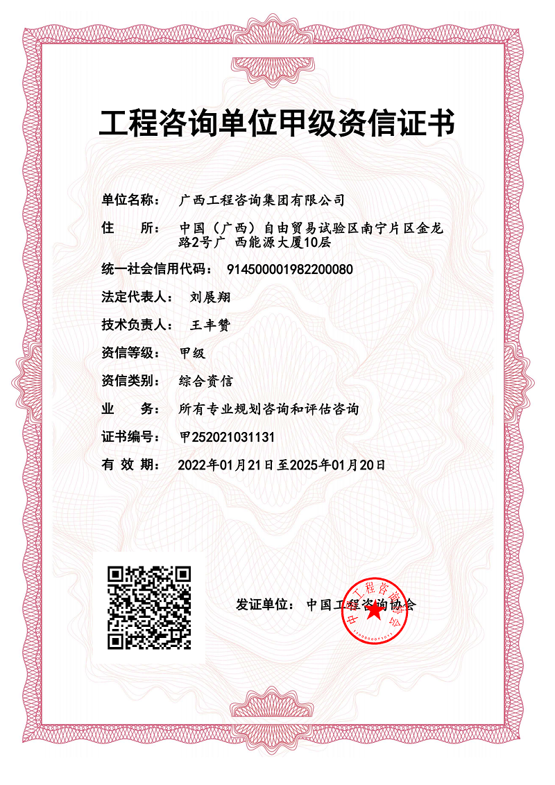 工程咨詢單位甲級(jí)綜合資信證書(所有專業(yè)規(guī)劃咨詢和評(píng)估咨詢)