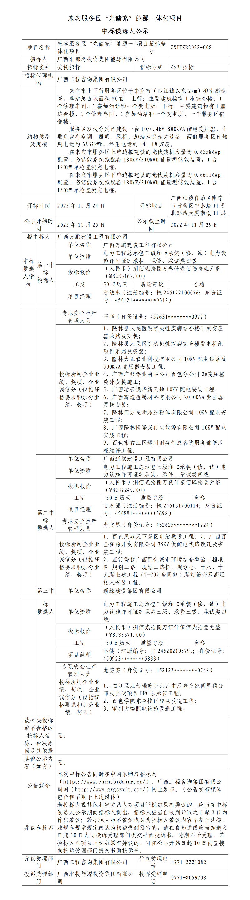 來賓服務(wù)區(qū)“光儲充”能源一體化項目中標候選人公示