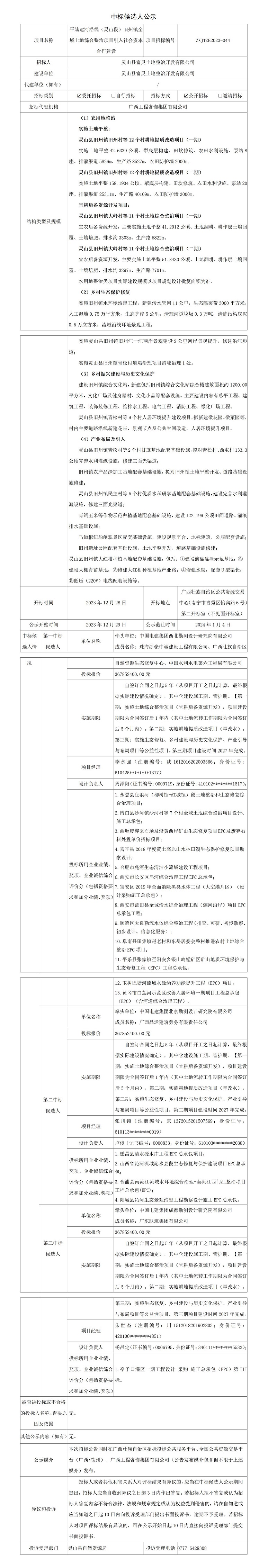 中標(biāo)候選人公示