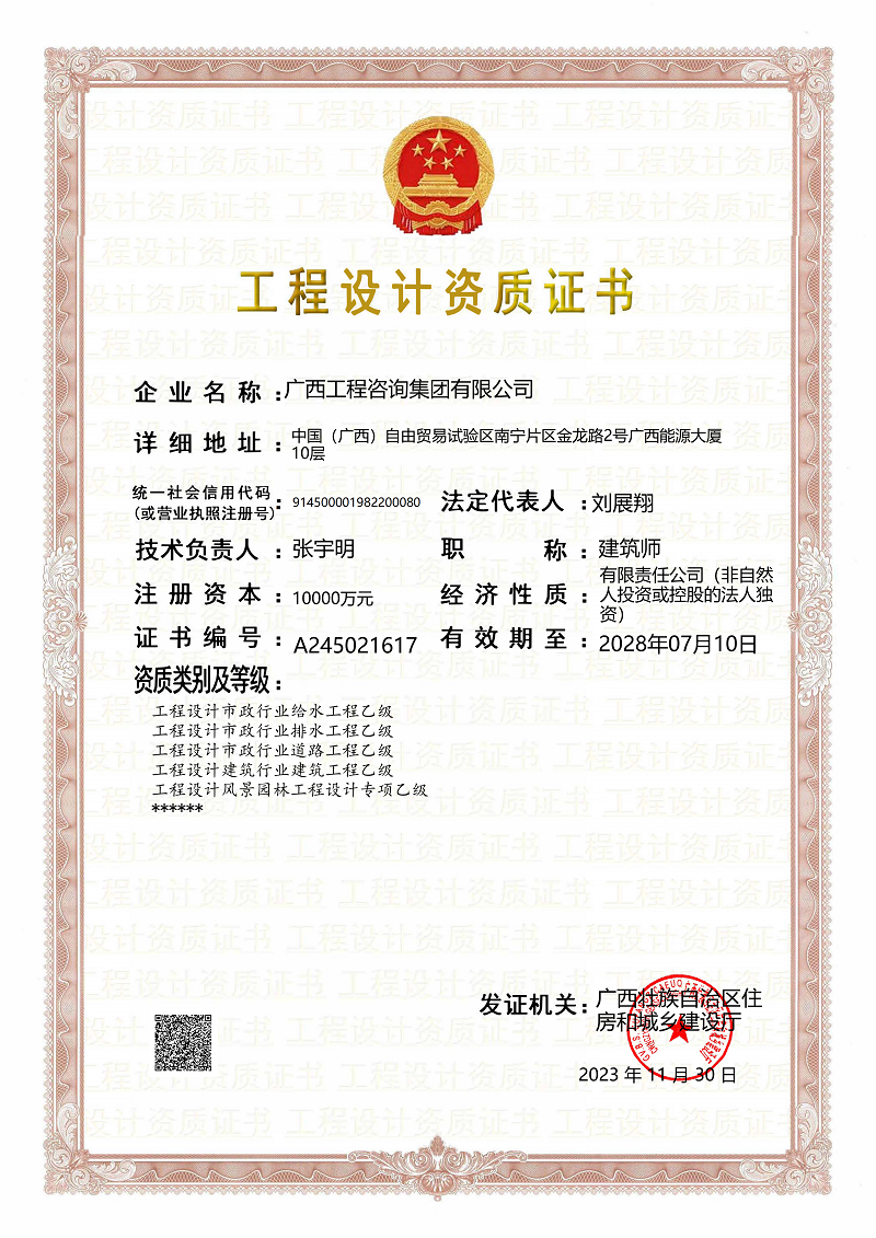 工程咨詢單位甲級綜合資信證書(所有專業(yè)規(guī)劃咨詢和評估咨詢)